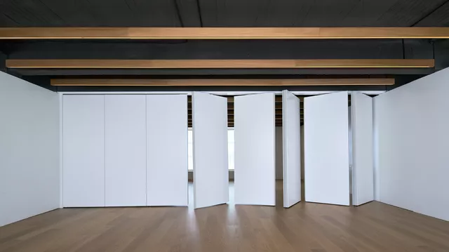 False ceilings and partitions were removed to reveal the original concrete structure and increase scale. All visible installations are camouflaged using a monochromatic treatment applied to all the elements above a simple white perimeter where storage spaces and mobile partitions are situated, providing essential versatility to each space.