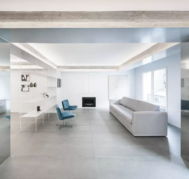 The project looks to optimise the use of space in a home located in one of Madrid’s first residential skyscrapers, built in the 1960´s, to attempt to resolve the dense domestic arrangement the clients needed inside.