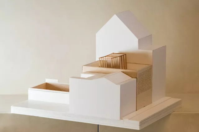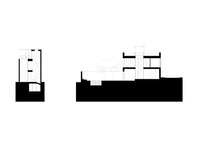 Its shape and layout respect the architecture of its surroundings. From the façade, which faces a public road, the house looks like an abstract curtain that engages with the environment through its materiality, serving as a transition between the multi-scale buildings on the same street and ensuring the privacy of occupants by concealing the interior.