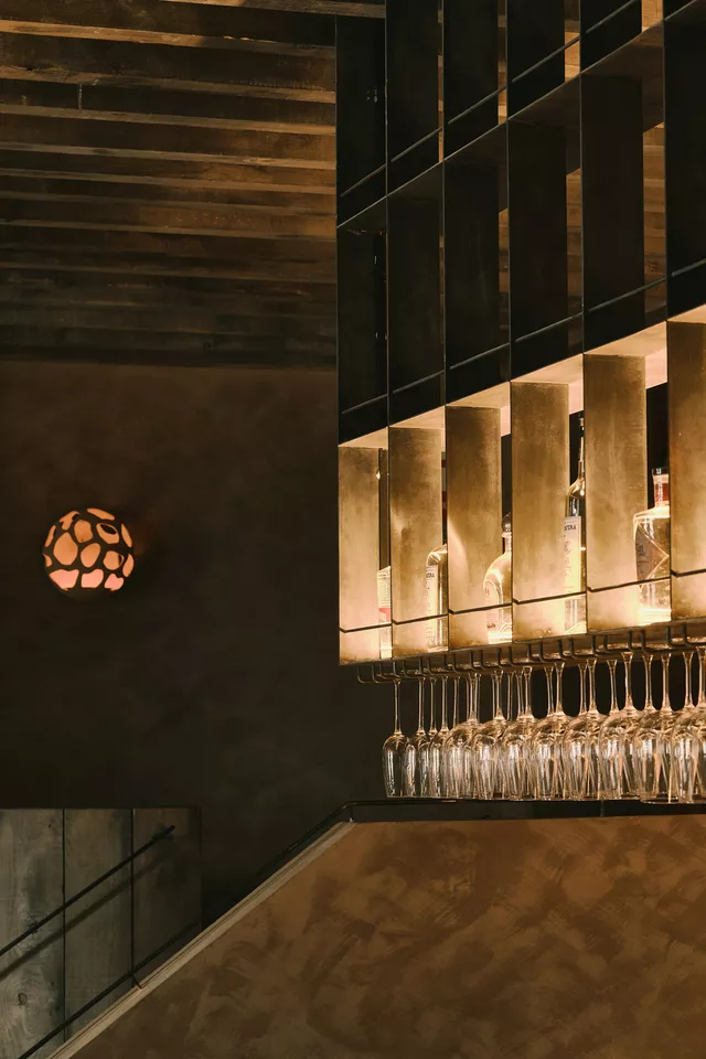 The carefully crafted theatrical lighting, the artisanal treatment of the materials, and the handmade furniture enhance diners’ sense of privacy and wellness.