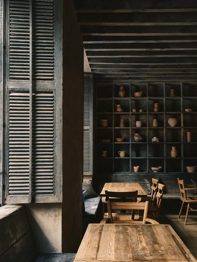 This place serves as a refuge from hectic urban life. Its visual and tactile elements combine to create an interior space where time stops and a unique culinary experience begins.