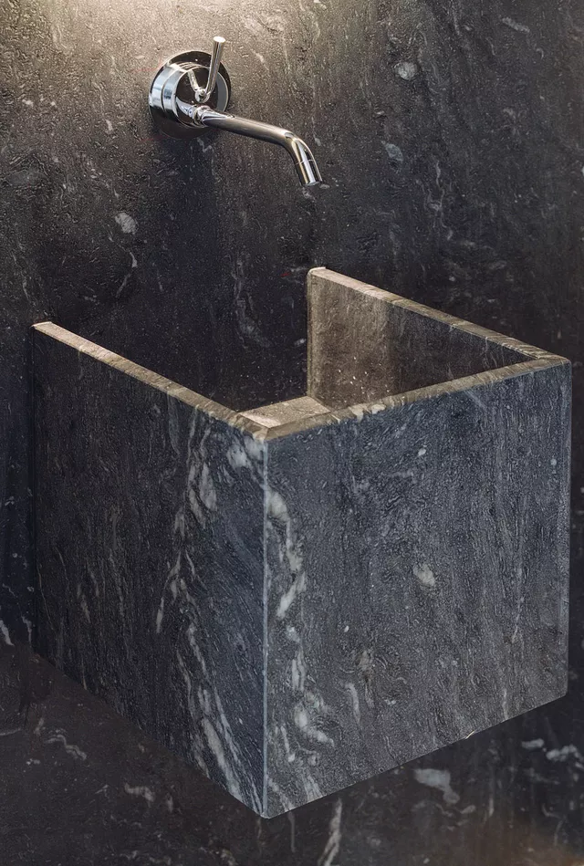 Opting for a contemporary, large, clean, open space, together with respect for the original building elements, generates a new sensitivity that obliges careful design and selection of the rest of the materials for the apartment. The elaborate laying of the floors, the purposeful design of the pieces of furniture and lighting, incorporating fine materials such as stone and brass, complete the intervention and succeed in creating a new atmosphere of a contemporary home that respects the original character of the late 19th century stately building in which it is located.