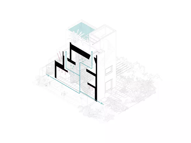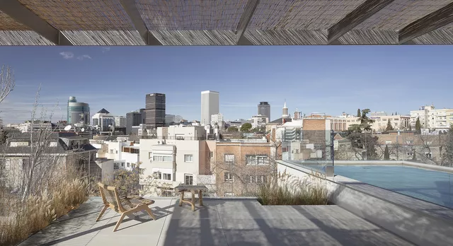 - The incorporation of passive and active design strategies to optimise the new building’s energy performance. This includes incorporating water on the roof to exploit its thermal inertia and the installation of geothermal wells in the home.