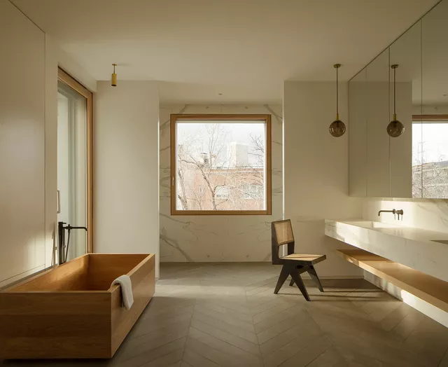 - Integrating the new single-family townhouse into its setting, striving to blend the new building with its extension in with the neighbouring buildings through a thorough study of its volume and the scale of its openings.