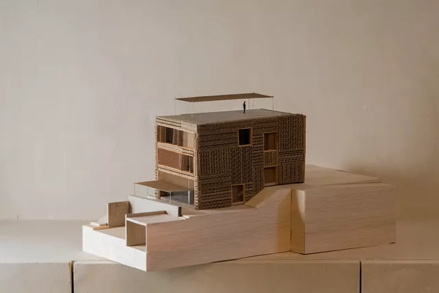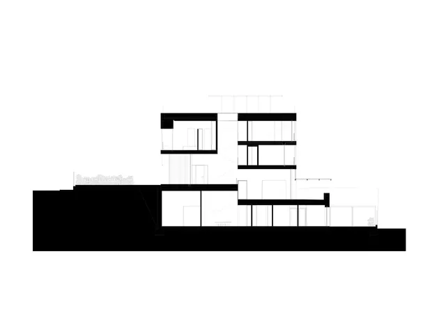 This single-family home is situated on the border between Dehesa de la Villa and the Bellas Vistas district of Tetuán (Madrid). The project involves the creation of a complete residential unit and a secondary professional space. A simple shape will make the most of the steep slope between the two streets bordering the plot, providing two separate access points with views overlooking the park and Madrid’s Sierra Norte on one end, and the city skyline on the other. The design entails three parallel structural screens that form a preliminary infrastructural space where all communication hubs and installations converge, and another 7m open living space between load-bearing walls.