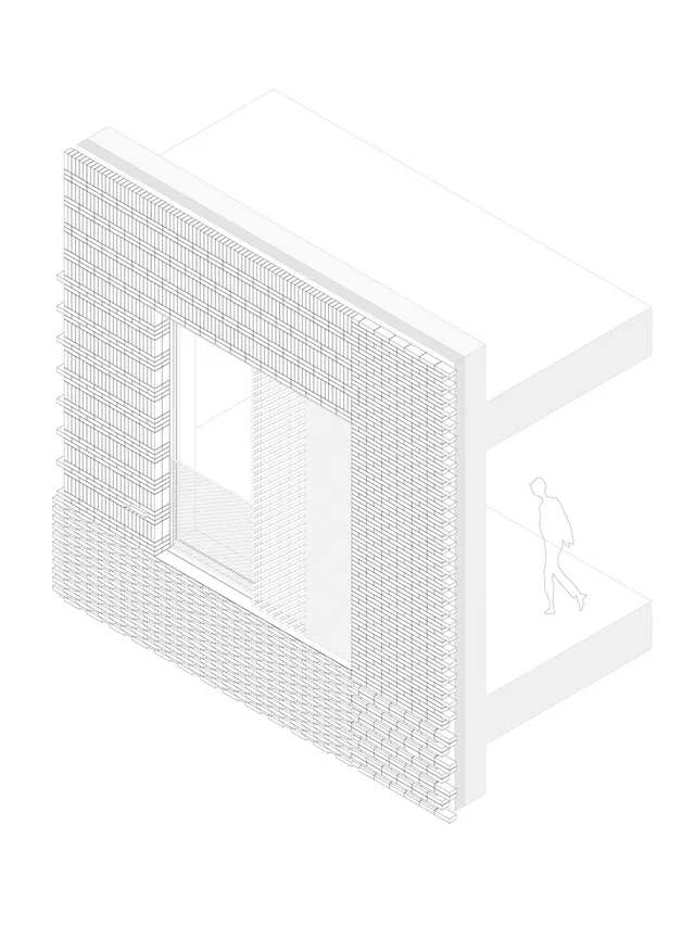 The materiality of the ceramic, the different masonry textures, the thickness of the walls, the self-regulating humidity, and the thermal inertia are present throughout the entire space. The space is the structure and the structure is the space.