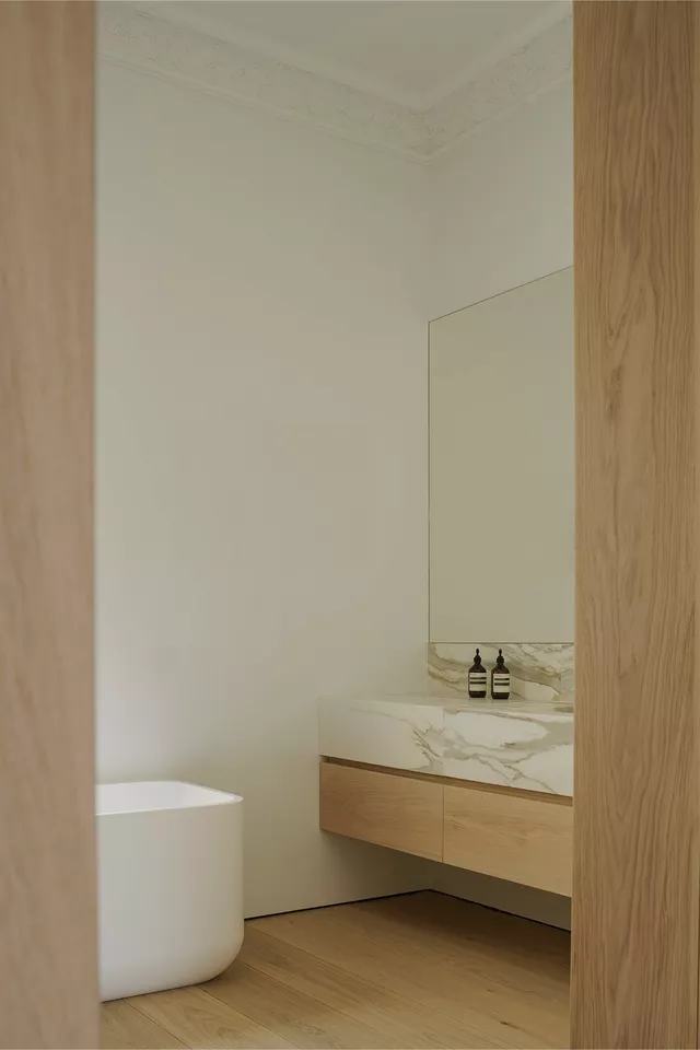The combination provides the home with a level of sophistication where the classical and artisanal combine to complement each other in a dialogue between the contemporary needs of function and wellbeing with the preservation and enhancement of historic architectural and cultural heritage.
