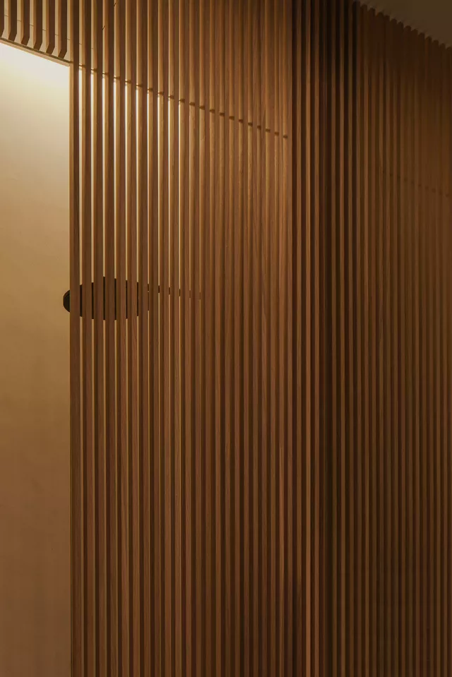 The layout makes the most of the building’s configuration, with rest areas facing the intimate garden space to maximise the quiet, natural lighting, and ventilation the environment provides. Common areas, meanwhile, face the main façade with views of the Madrid skyline, creating large-scale open spaces that replace the original corridors and converge on a kitchen that serves as a nucleus between the two sections.